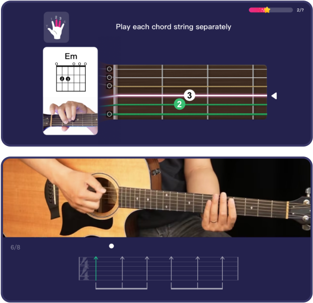 The lessons guide you step by step, allowing you to learn and practice simultaneously. Through a variety of interactive exercises, it provides instant feedback and adjusts your practice routine, making learning incredibly easy and enjoyable.