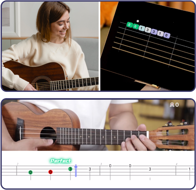 Using our AI and music recognition technology, OKMusician listens to your playing and provides instant feedback on your accuracy and timing. Every pluck and strum is recognized.You don't need any additional equipment, whether it's a guitar or ukulele!